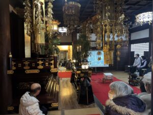 大師堂での法要では本年も本堂にモニターを設置し、