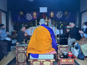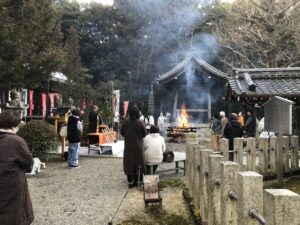 屋外の護摩壇で昨年のお札のお焚き上げを行っております。